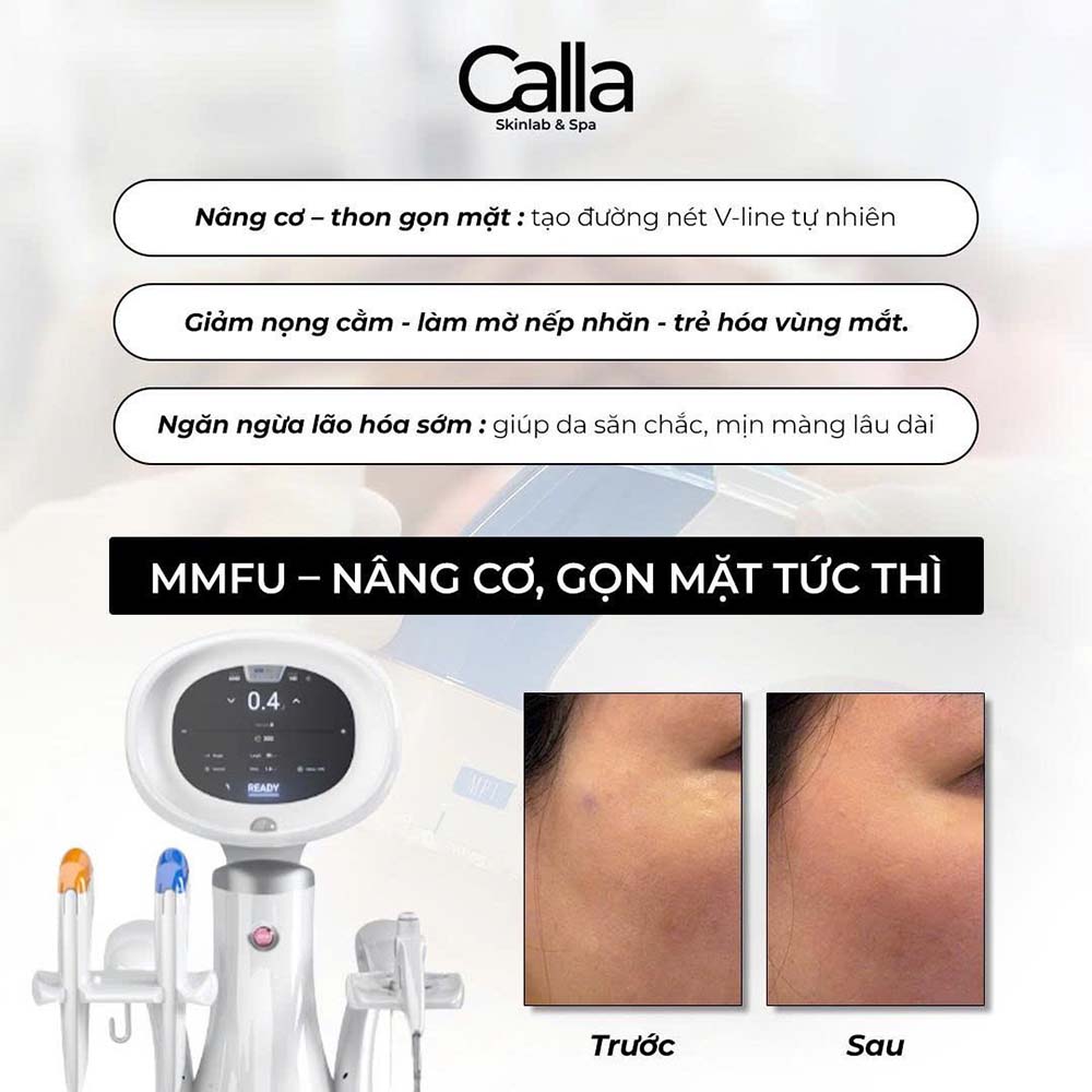 Công nghệ MMFU (Multi-Position Fine-tuned Ultrasound) by MPT tại Calla Skinlab & Spa đã làm thay đổi cục diện của ngành công nghiệp làm đẹp bằng khả năng nâng cơ đa tầng, giúp trẻ hóa da một cách nhẹ nhàng mà vẫn đạt hiệu quả tối ưu.